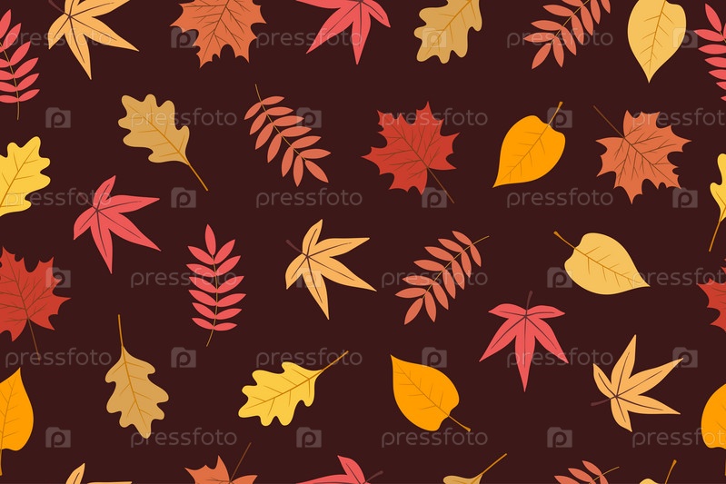 Вектор бесшовный фон из осенних ярких листьев. Фон для текстильных или книжных обложек, обоев, дизайна, графики, печати, хобби, приглашений. Векторная иллюстрация