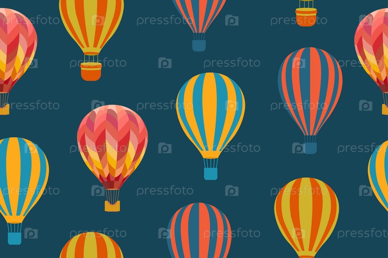 Бесшовный фон с воздушными шарами. Полет в небе и концепция летнего веселья. Векторная иллюстрация