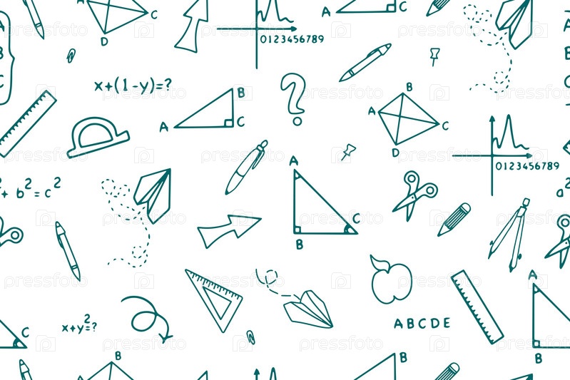 Снова в школу рисует бесшовный узор со школьными принадлежностями. Векторные иллюстрации в стиле рисованных рисунков