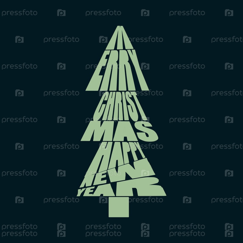 Надпись с Рождеством и Новым годом в виде елки. Рождественский фон с рукописной типографикой. Векторная иллюстрация