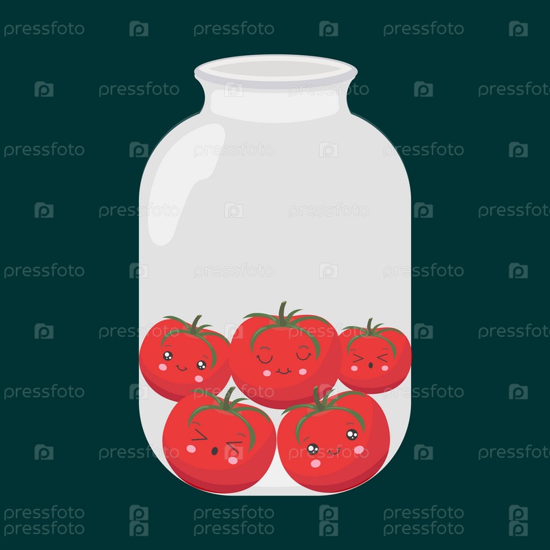 Баночка с забавными помидорами в стиле каваи. Векторная иллюстрация