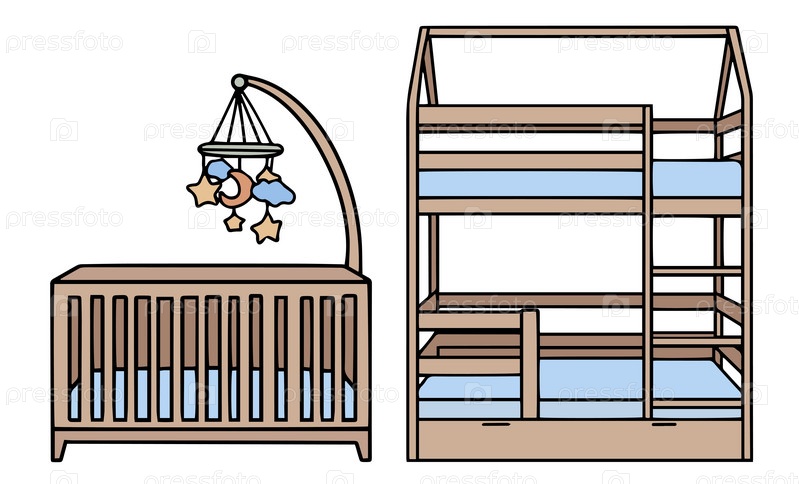 Детские кровати. Мебель для детской комнаты. Ручная рисованная векторная иллюстрация в стиле эскиза. Вектор