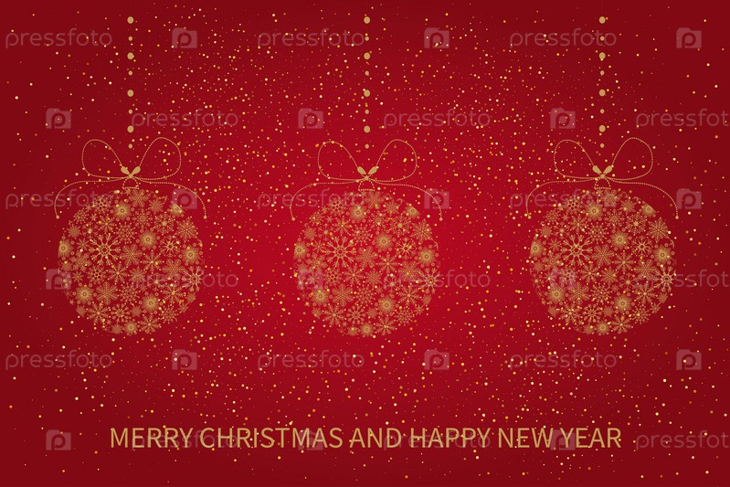 Праздничная рождественская открытка с елочными шарами из снежинок. Открытка с Рождеством и Новым годом