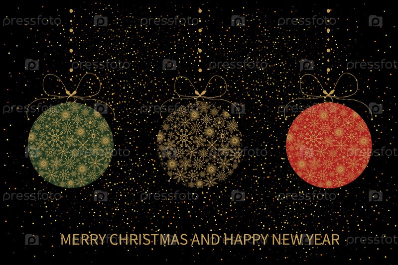 Праздничная рождественская открытка с елочными шарами из снежинок. Открытка с Рождеством и Новым годом