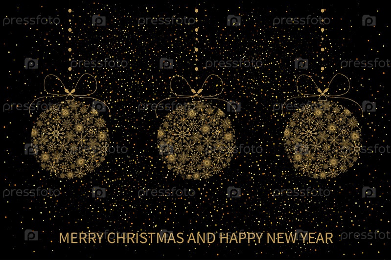 Праздничная рождественская открытка с елочными шарами из снежинок. Открытка с Рождеством и Новым годом