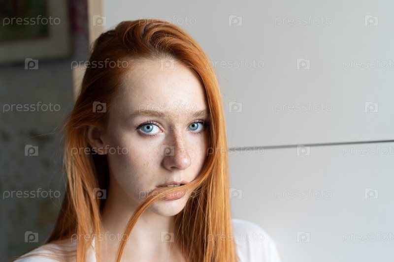 Портрет молодой красивой женщины с рыжими волосами в студии