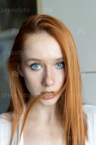 Портрет молодой красивой женщины с рыжими волосами в студии