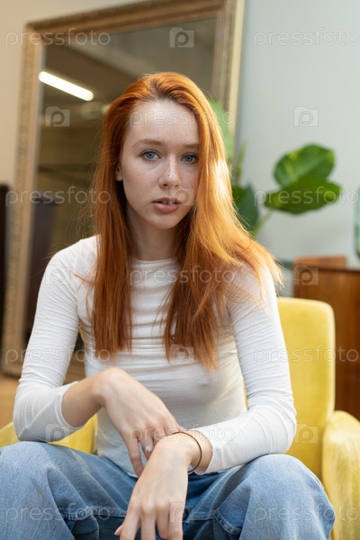 Портрет молодой красивой женщины с рыжими волосами в студии