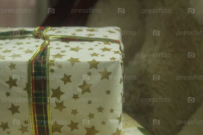 Новогодние рождественские подарки, украшенные подарочной бумагой и бантиками. Праздничная атмосфера