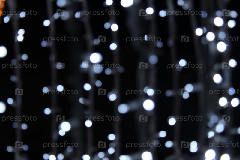 Синие гирлянды на темно-черном фоне. Новогодний рождественский фон. Праздничное освещение