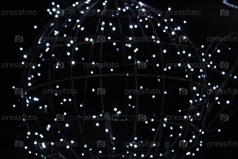 Сине-голубые гирлянды на темно-черном фоне. Новогодний рождественский фон. Праздничное освещение