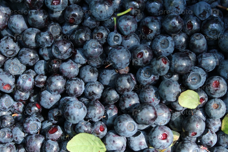 Фон из еды сине-черной черники крупным планом с зелеными листьями. Сбор ягод, как собирать ягоды, земледелие, витамины, природная польза