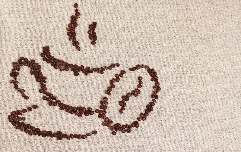 Форма чашки из жареных кофейных зерен с местом для копирования