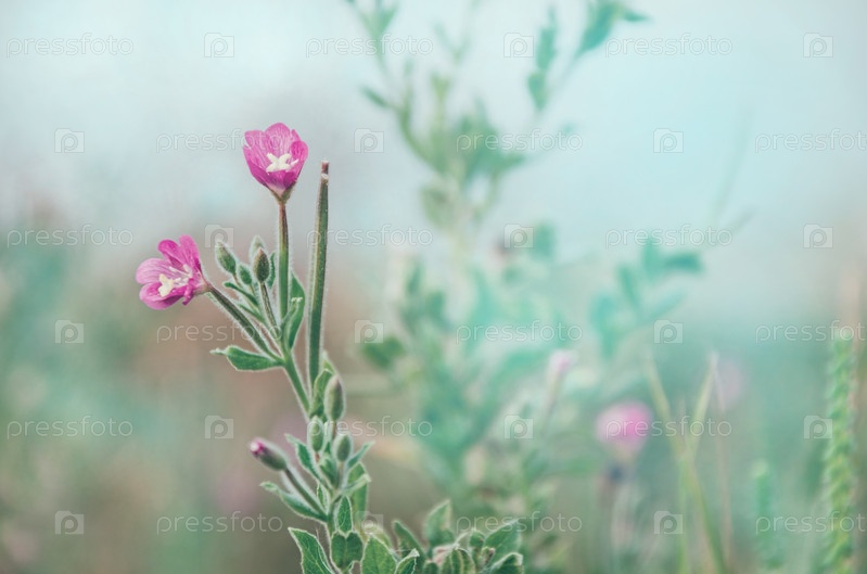 Розовые цветы в парке на размытом синем фоне