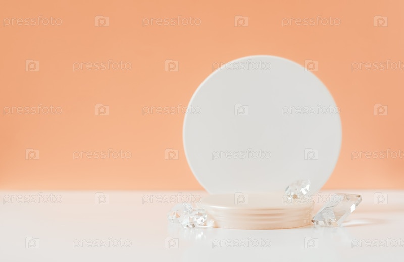 Круглый подиум и стеклянные бусины на алом фоне
