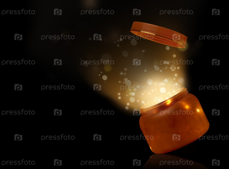 Левитирующая коробка с крышкой и яркими огнями на черном фоне