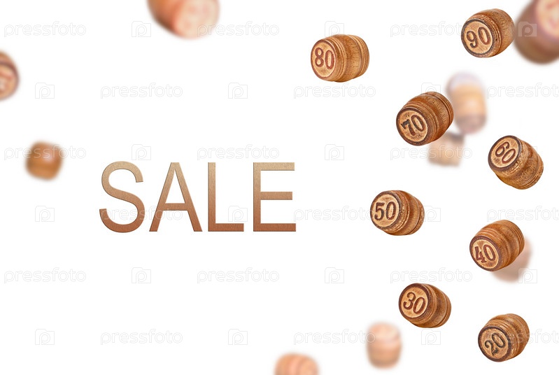 Деревянные фигурки на продажу на белом фоне