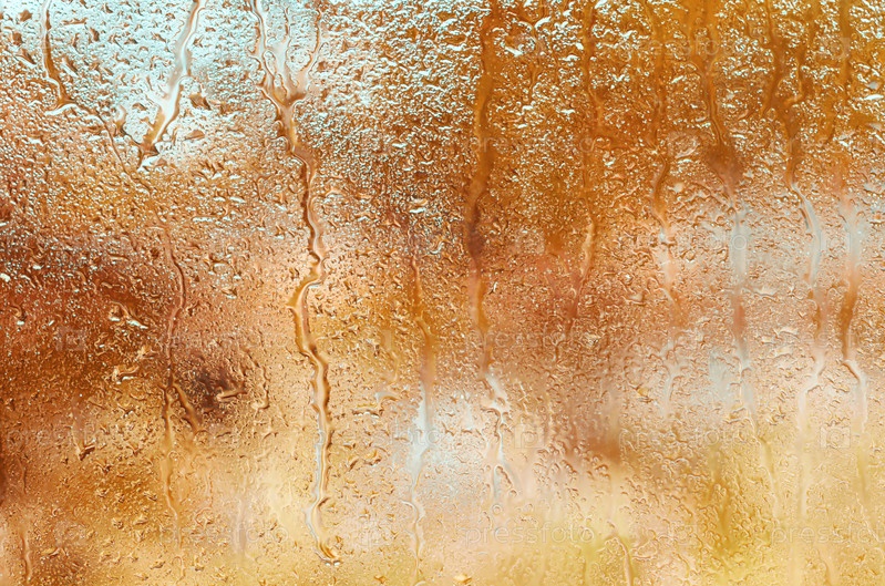 Капли дождя на стекле на оранжевом осеннем фоне