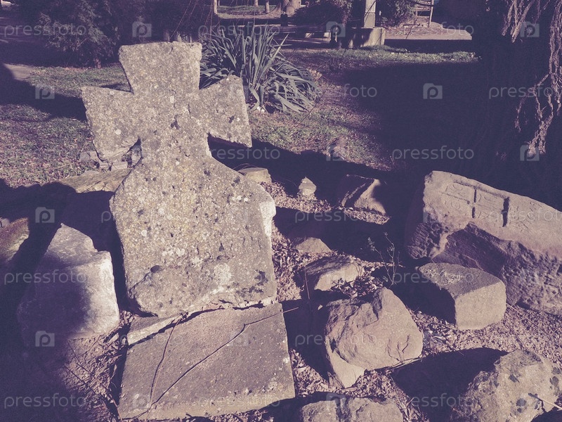 Крест. Надгробие на католическом христианском кладбище. Покосившийся каменный памятник. Неизвестная могила в лучах низкого вечернего солнца. Тема Хэллоуина