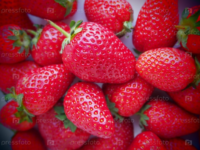 Клубника. Клубничный фон. Вкусные спелые красные крупные ягоды садовой клубники. Здоровое питание, витамины и вегетарианская диета. Натюрморт с едой. Копирование пространства. Плоская планировка