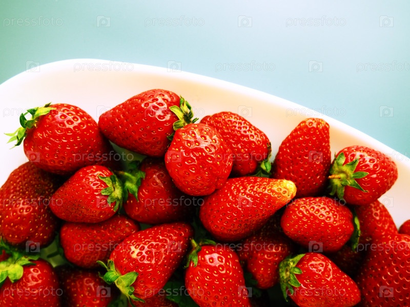 Клубника на тарелке, на белом фоне. Белая посуда и вкуснейшая красная крупная садовая клубника. Здоровое питание, витамины и вегетарианская диета. Натюрморт с едой. Копирование пространства. Плоская планировка