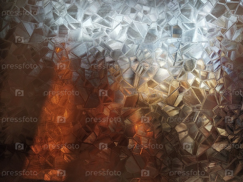 Гофрированное стекло с подсветкой. Красивое преломление света в красном, коричневом, желтом, оранжевом и черном цветах. Абстрактный фон для самоклеящихся пленок. Ребристая стеклянная поверхность