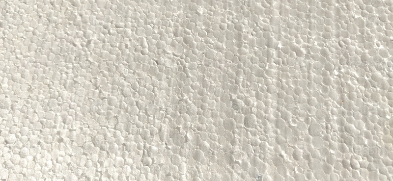 Пенопласт крупным планом. Белый синтетический химический, строительный, изоляционный и упаковочный материал. Поры, круглые элементы. Светлый абстрактный фон