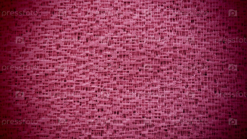 Прозрачный тюль сиреневого или розового цвета в виде сетки. Сетчатая ткань. Крупный план. Вуаль или муслин. Крупный план занавески с отверстиями разного размера. Абстрактный фон. Темное виньетирование по краям