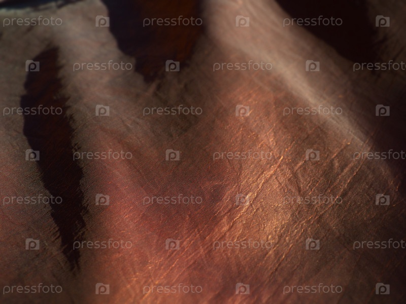 Красивая ткань - тафта, аккуратно сложенная волнами. Мятый материал, похожий на шелк или парчу. Перелив и цветовой градиент при разных углах освещения. Ткань для пошива одежды и штор