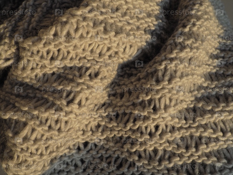 Вязаное изделие из объемной полиакриловой пряжи бежевого или коричневого цвета. Пышная коробка машины. Вариант теплого гардероба на осенне-зимний период. Вязать лицевой, изнаночной и накидной петлями