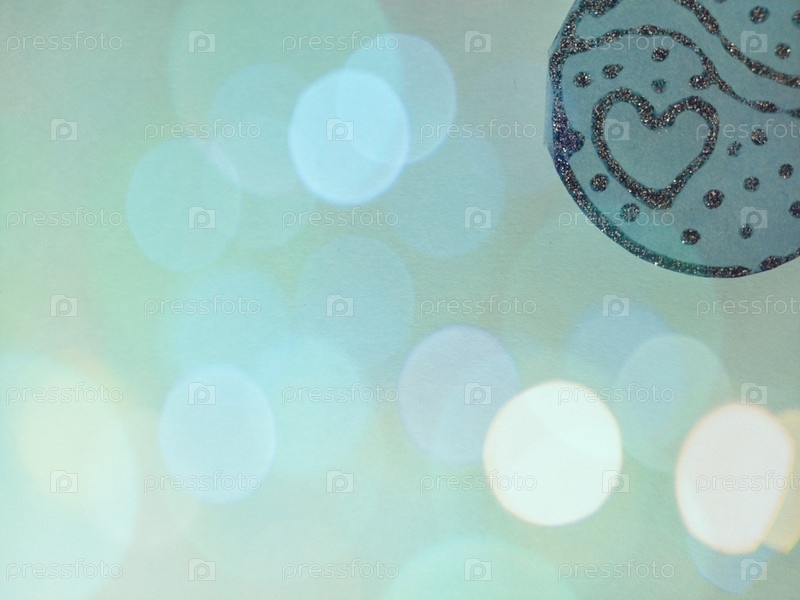 Искры и боке на синем фоне. Справа вверху декоративная деталь из синей бумаги серебристого цвета с пайетками, расположенными в виде сердечка и плавными закругленными линиями