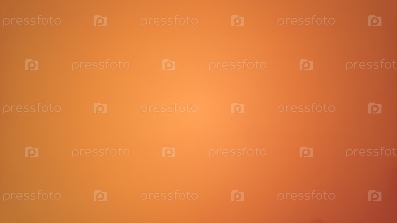Бумага оранжевая. Неоднородное освещение. В середине листа тон светлее, по краям темное виньетирование. Текстура, фон, открытка, макет. Теплый тон