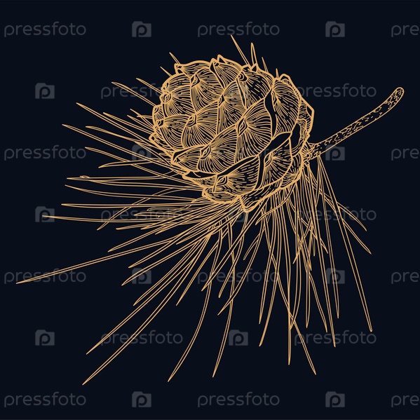Линия искусства золотая еловая ветка с конусом