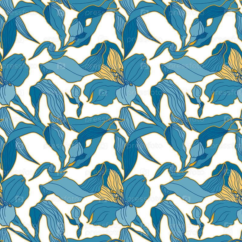 Светло-голубой бесшовный узор с высокодетализированными бутонами и цветами альстромерии