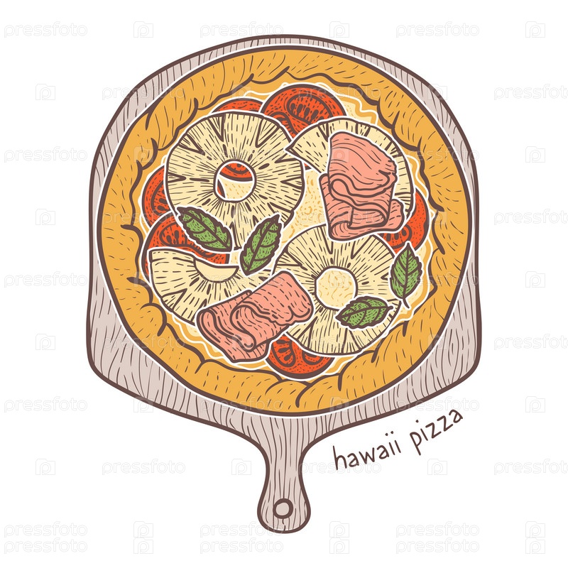Гавайская пицца с пармской ветчиной и ананасовой иллюстрацией