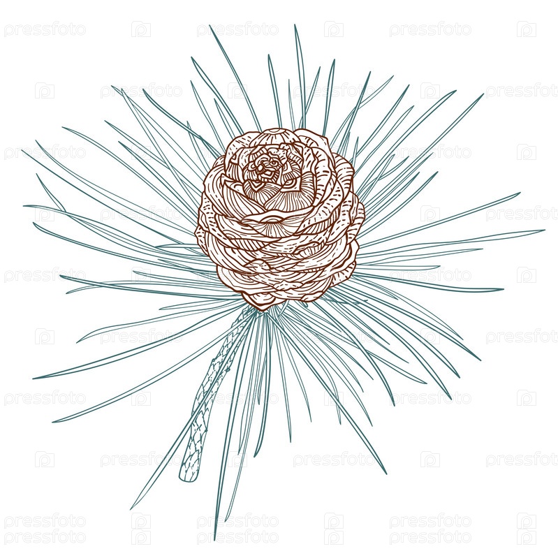 Линия искусства кедровая ветка с шишкой