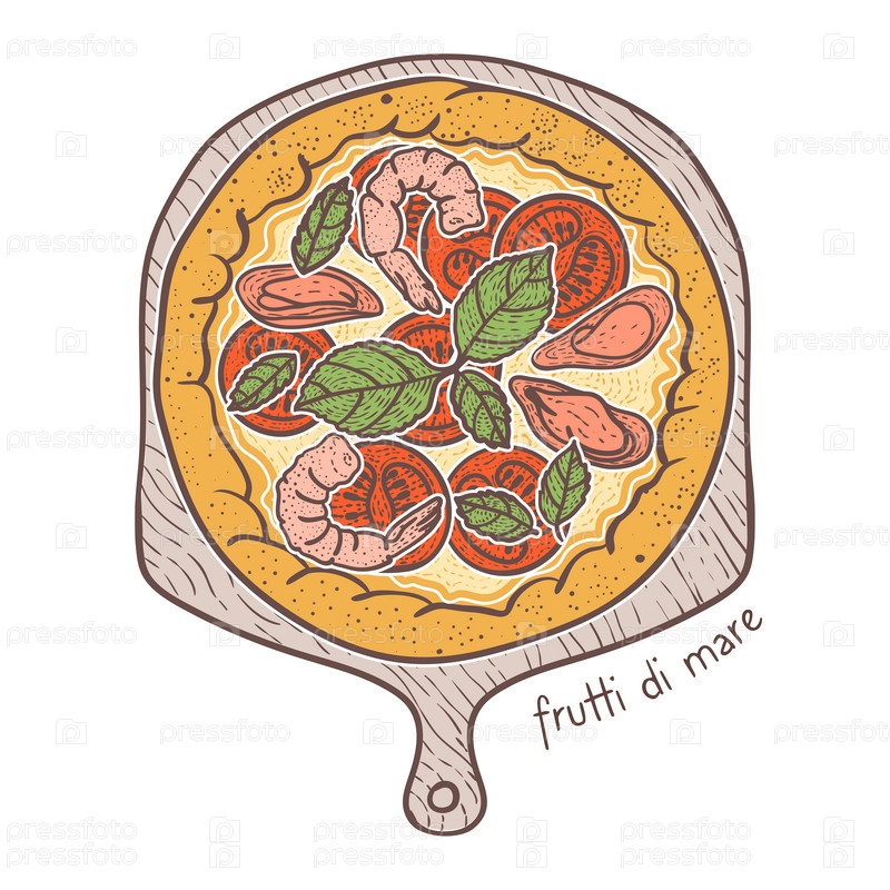 Frutti di mare Пицца с морепродуктами, рисунок иллюстрации