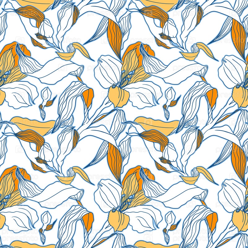 Белый бесшовный узор с высокодетализированными бутонами и цветами альстромерии