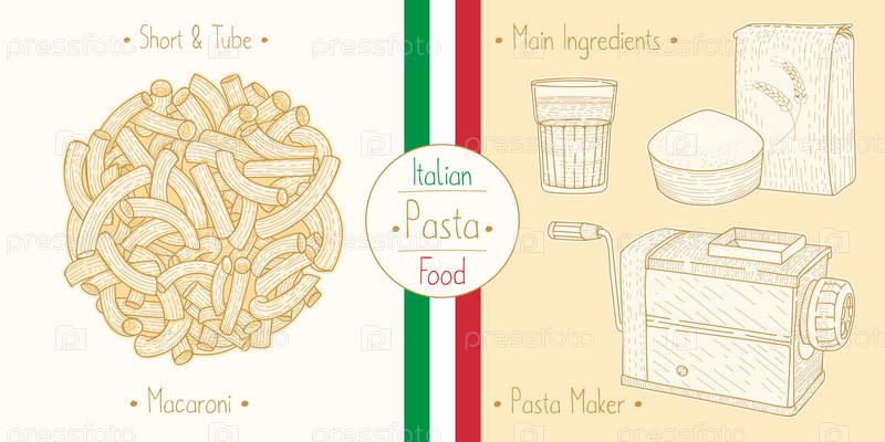 Приготовление итальянской еды. Паста в форме локтя, она же макароны, ингредиенты и оборудование