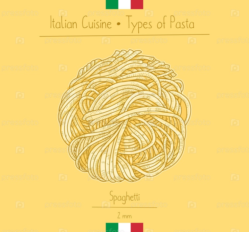 Итальянская еда спагетти-паста, эскиз иллюстрации в винтажном стиле