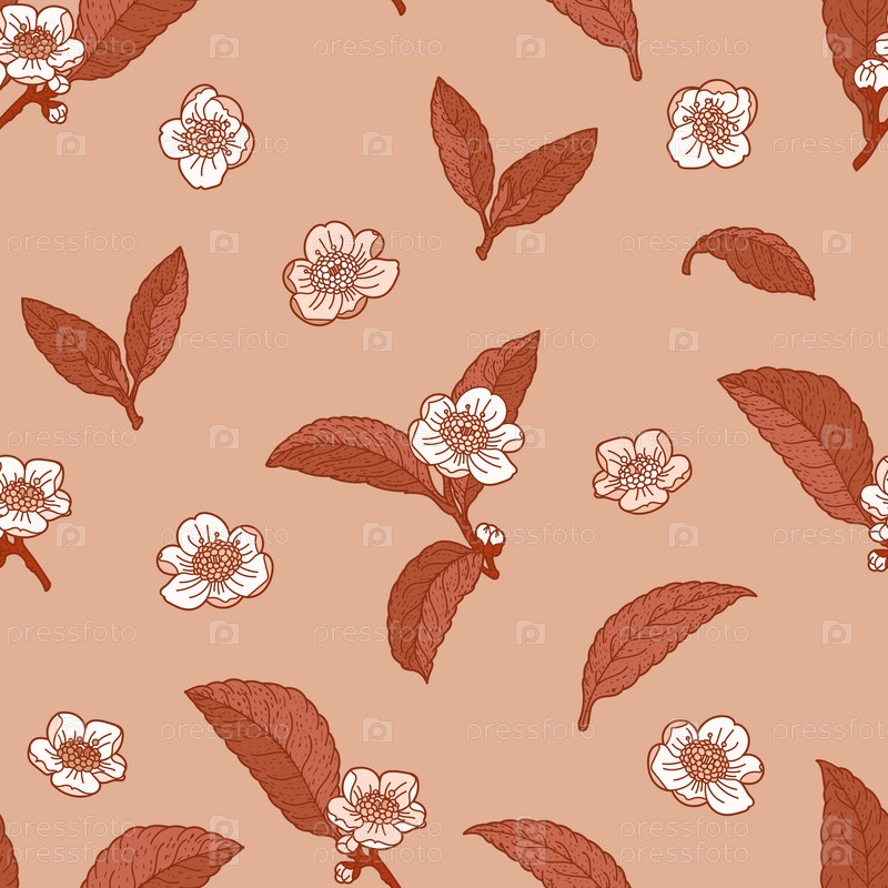Чайные цветы и листья в бесшовном узоре