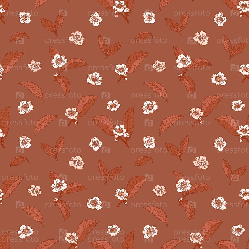 Цветы и листья камелии чай темно-коричневый бесшовный узор