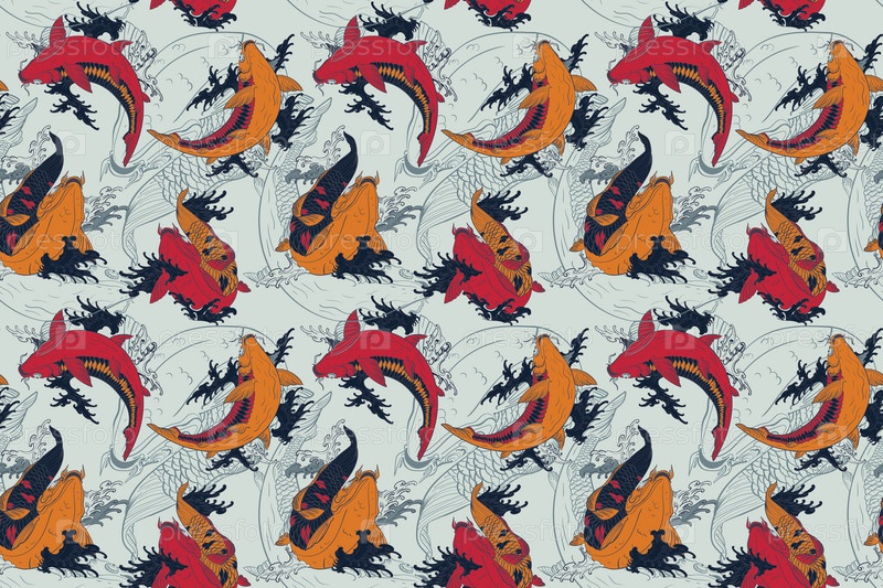Красные и оранжевые карпы кои японский светло-серый бесшовный узор