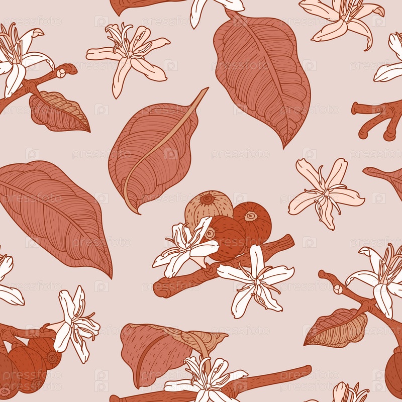 Бежевый бесшовный узор с цветущей кофейной ветвью