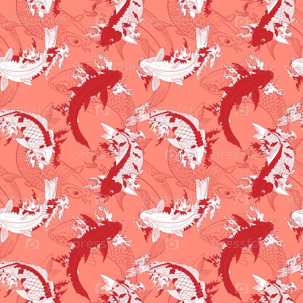 Японские карпы Кои декоративный белый и красный бесшовный узор