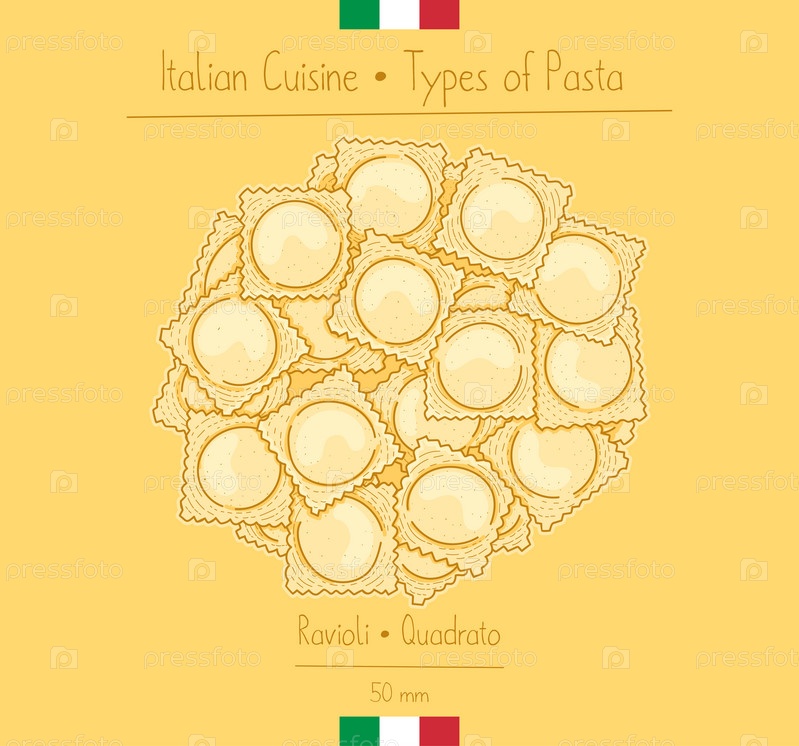 Итальянская квадратная паста с начинкой, известная как Равиоли Квадрато, рисующая иллюстрации в винтажном стиле