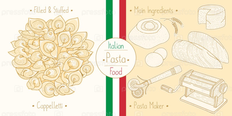 Приготовление итальянской еды, фаршированной пасты Caooelletti с начинкой, ингредиентами и оборудованием