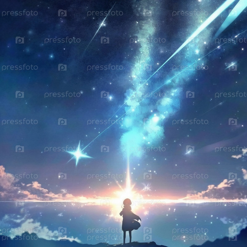 Человек на фоне загадочного звездного неба