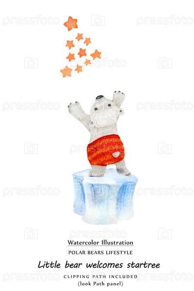 Симпатичная акварельная иллюстрация Маленький медвежонок приветствует созвездие Рождественского дерева. Включен изолированный контур обрезки