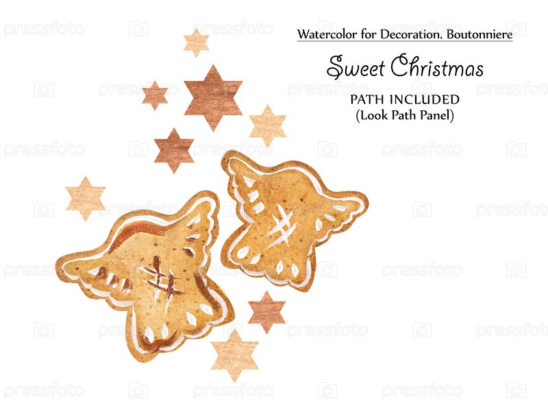 Сладкие акварельные виньетки с пряниками и шоколадными конфетами